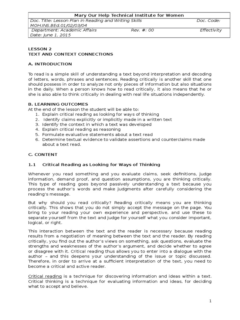 Explain What Is Critical Reading As Reasoning